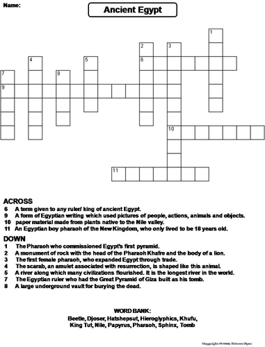 Ancient Egypt Crossword Answers / On this page you will find the solution to sacred cross in ancient egypt crossword clue crossword clue.. Egypt is a crossword puzzle answer. Free printable games for kids: Portrait masks were made from this material. Waterfall 1 ancient egypt crossword answer sheet t u ta n k h a m u n p o o g r a p h a r a o h p a py r u s g i z a n i l e m u mm y h i e r a t i c c. Down solutions pharaoh religion nile tomb temple sphinx.